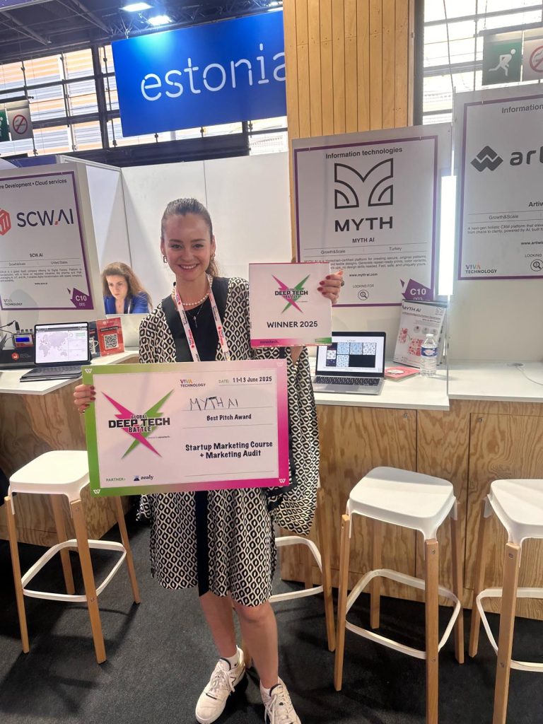 We’re thrilled to announce that MYTH AI has been honored with the Best Pitch Award at VivaTech 2025, Europe’s largest startup and tech event. Selected from hundreds of companies across 80 countries, MYTH AI captured the spotlight during the Global Deep Tech Battle, pitching live on stage in just 3 minutes — and walking away with the trophy.